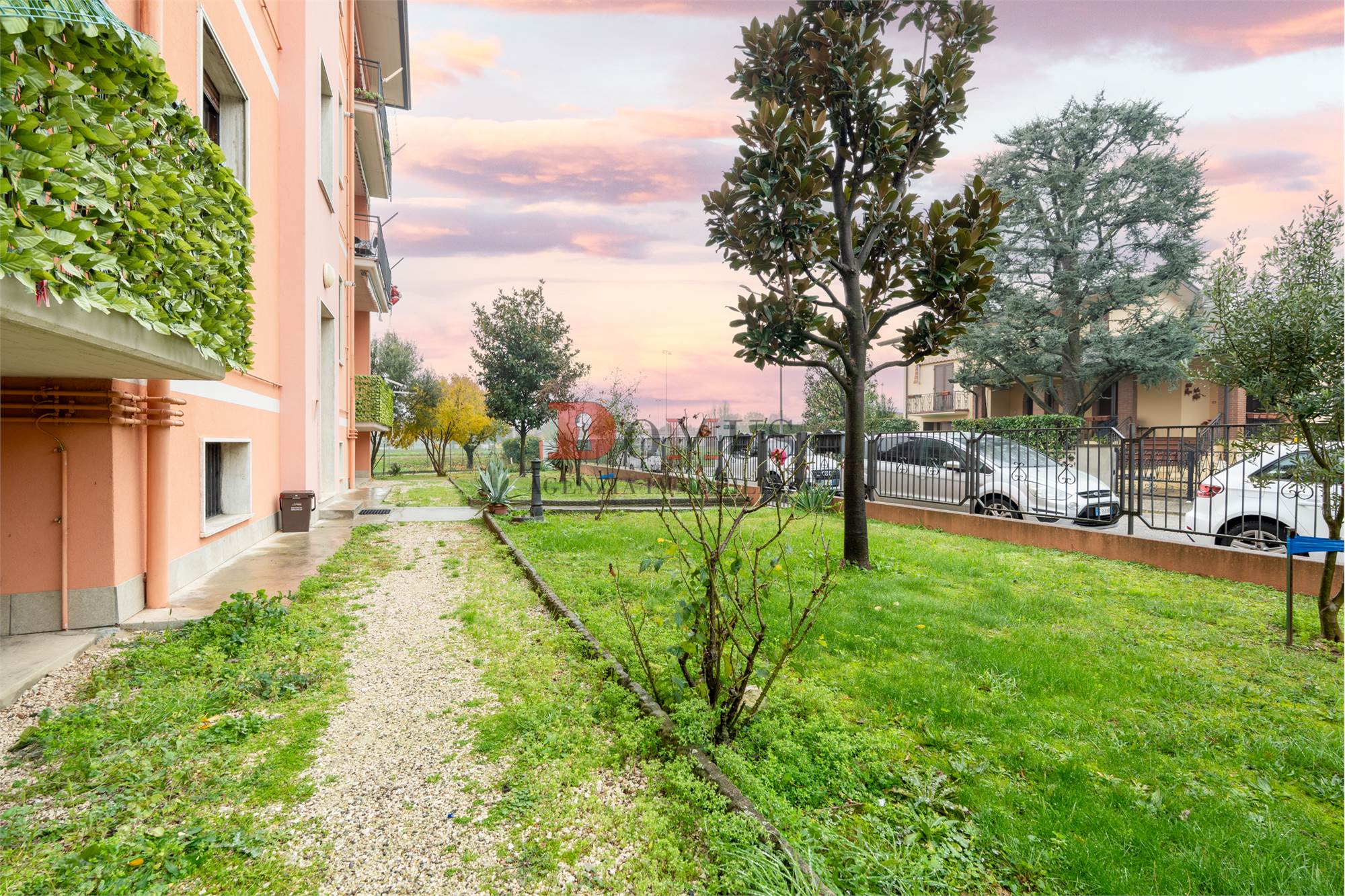 L'abitazione si trova a piano rialzato ed affaccia su un piacevole giardino condominiale.